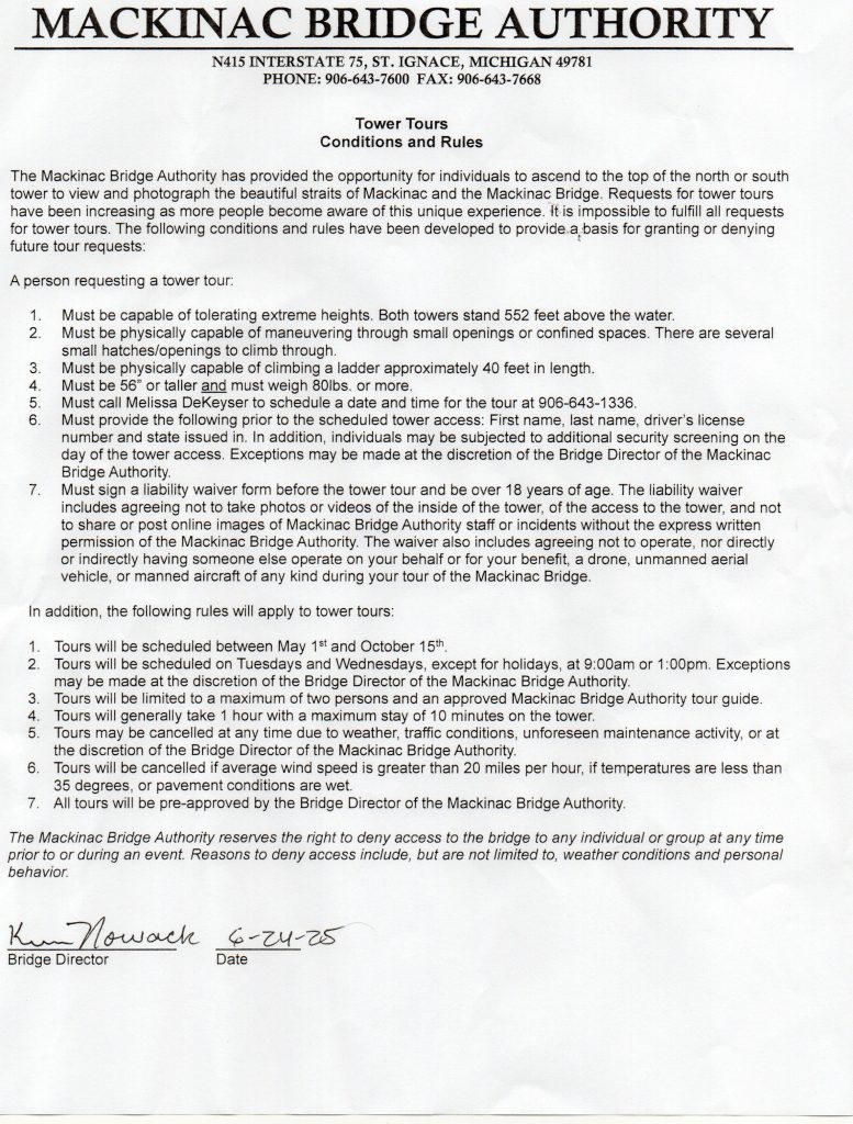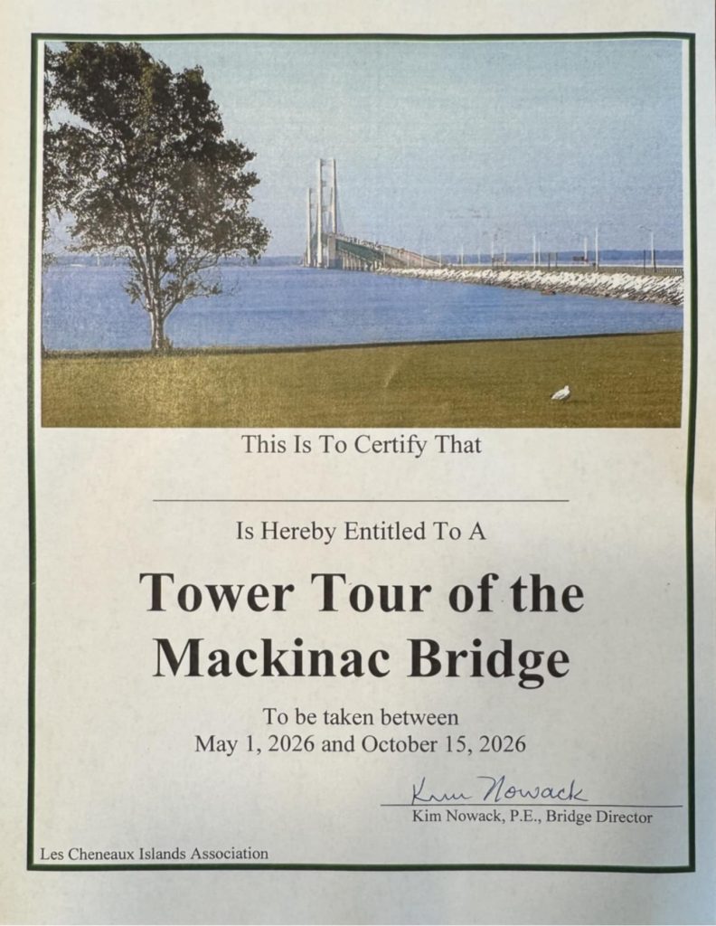 Bidding on a 2-person Tower Tour of the Mackinac Bridge begins now and ends at the LCIA Annual Dinner on July 30.